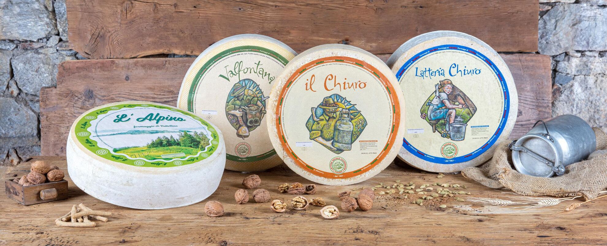 I migliori formaggi di Valtellina, come vuole la tradizione: i nostri maestri casari si tramandano da generazioni le tecniche di lavorazione e stagionatura, che danno origine a questi capolavori. I formaggi a pasta semi dura sono perfetti da offrire in tavola ogni giorno, ma anche per la creazione di ricette tipiche. Il Chiuro è un formaggio di latte vaccino, stagionato per oltre 150 giorni in un ambiente particolarmente umido, come in grotta. Il Latteria è fresco e dolce e grazie al suo sapore di latte è ideale per essere servito in tavola ogni giorno. Il Valfontana, dolce e delicato, prende il nome dall’omonima verdeggiante vallata a pochi chilometri dalla Latteria. L’Alpino è un formaggio il cui sapore ricorda quello del latte appena munto.