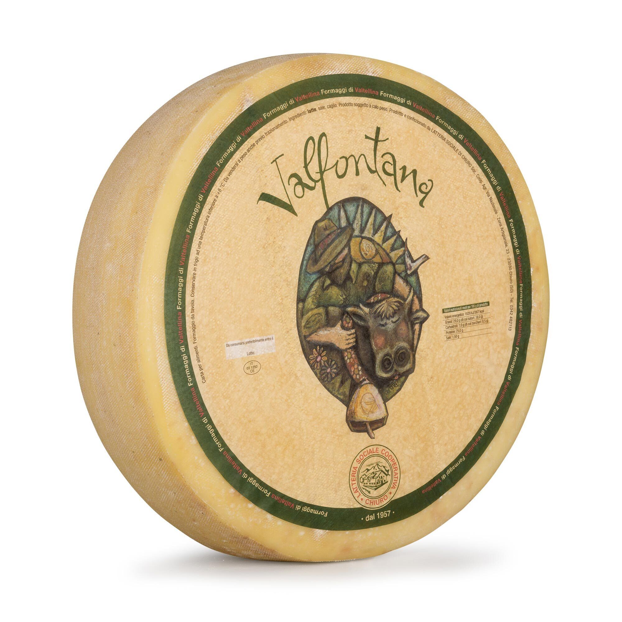 Il Valfontana è un formaggio dolce e delicato, che deve il suo nome alla vallata verdeggiante a pochi chilometri dalla Latteria. Il suo profumo ricorda il latte e i fiori di montagna. È prodotto con latte vaccino valtellinese e prima di arrivare in tavola viene affinato per poco più di un mese. Il Valfontana ha un gusto delicato, con note floreali e fruttate. La pasta è caratterizzata da un’occhiatura pronunciata e uniforme, la crosta è edibile perché non trattata, proprio come una volta. Genuino e buono, questo formaggio è l’ingrediente ideale per ricette tradizionali, come pizzoccheri e polenta taragna, ma anche per i grandi classici della cucina italiana e lombarda, come risotti, pasta e sformati.