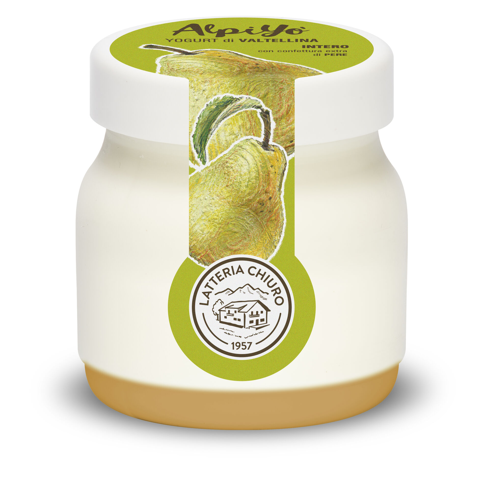 Yogurt (latte fresco pastorizzato intero della Valtellina, fermenti lattici vivi), confettura extra prodotta in Valtellina di pere 16% (pere 10% sul prodotto finito, zucchero di canna, gelificante: pectina, correttore di acidità: acido citrico).